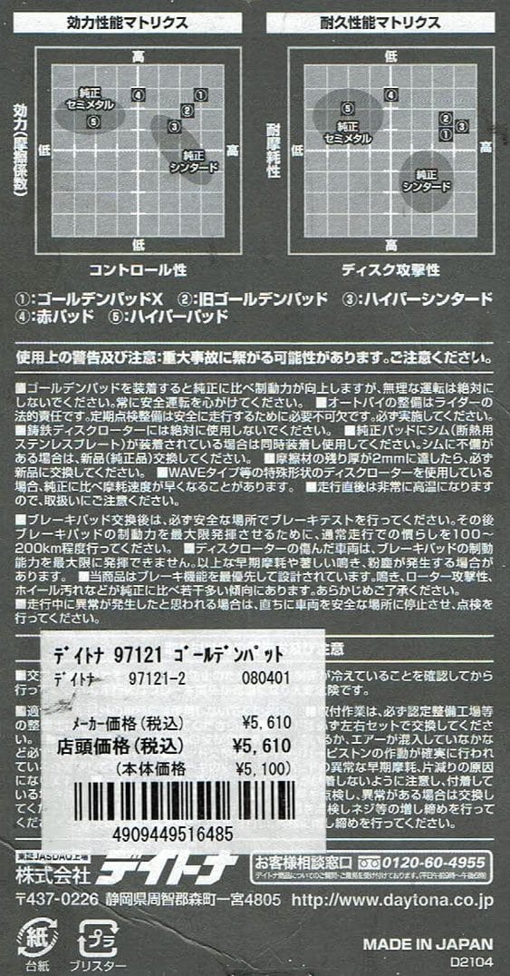 今まで付いていたののも、デイトナのゴールデンパッドで摩耗状態はこんな感じです。