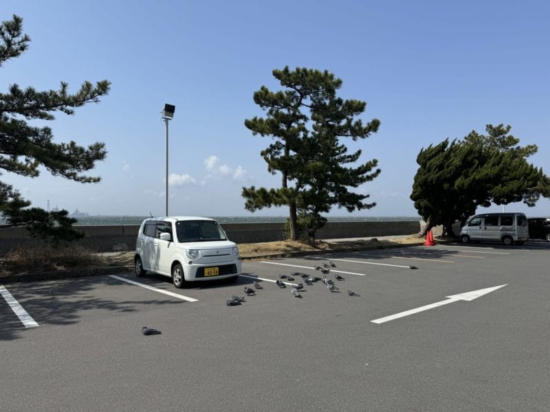 鳩もさすがに飛べないみたいで、地べたにはいつくばってました。