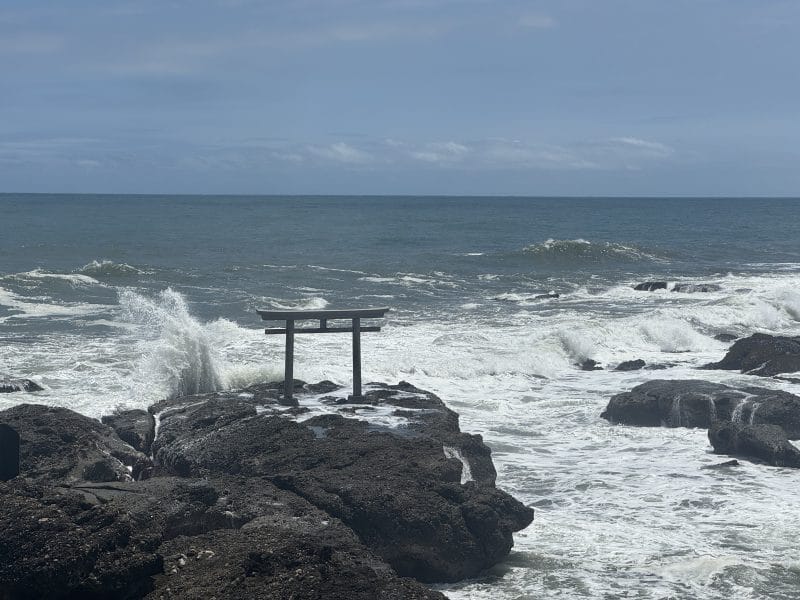 「山水」の座席から見える鳥居には強い波が、、、