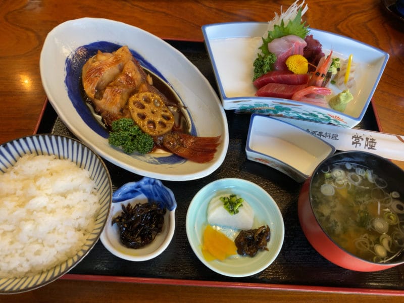 今回は常盤と言うお店で、2階の広々とした座敷の窓側に通してもらいました。頼んだのは「祭り定食」2500円也。今の季節のおすすめの赤魚の煮つけを頂きました。 赤魚 食べ応えあり で美味しかった (^^♪ 刺身、みそ汁も美味かった。 今まで行った銚子の... -