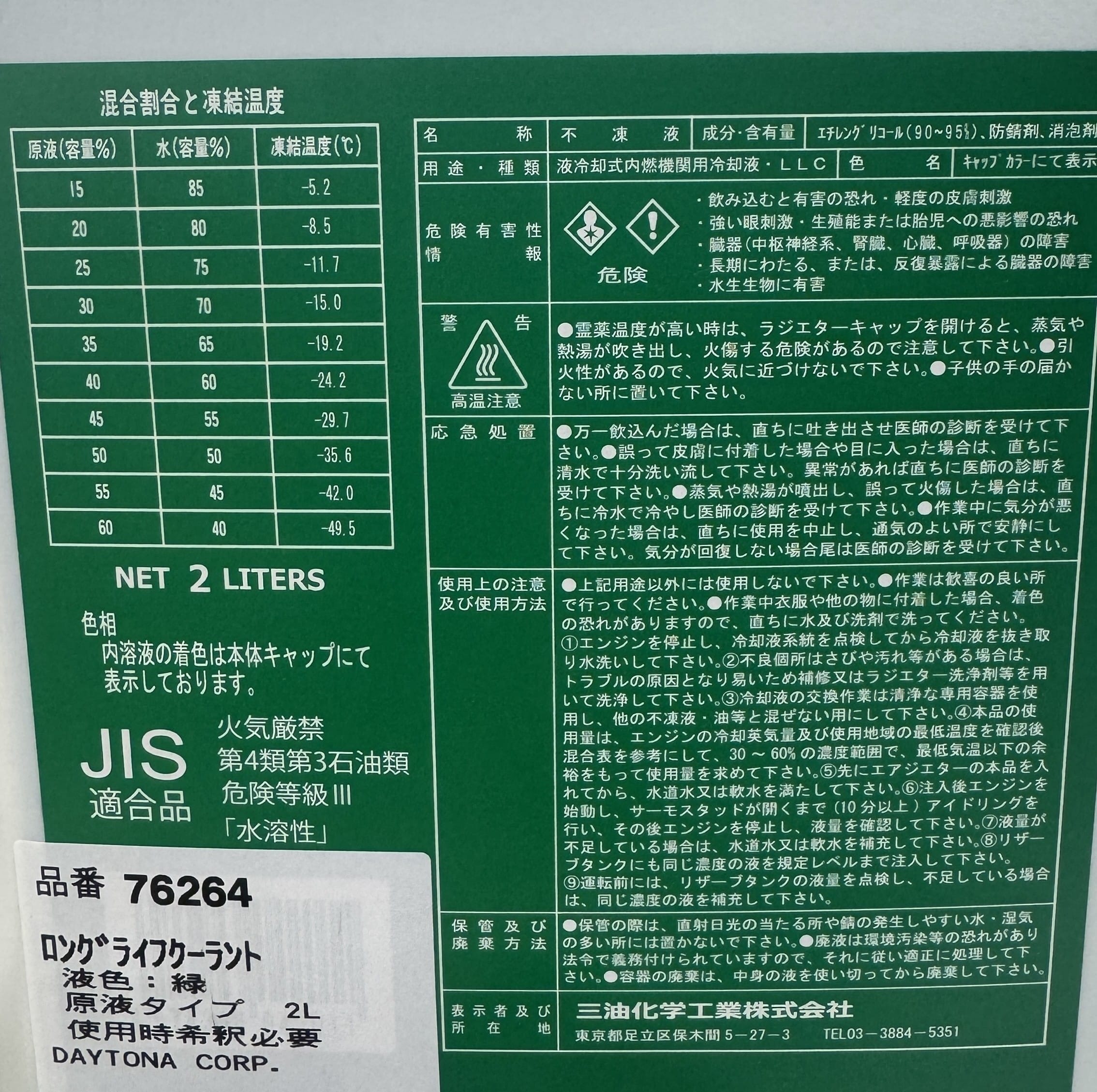 LLC(ロングライフクーラント):1,760円(DATONA 76264)