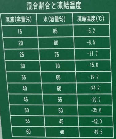 この地区はそんなに寒くならないので、原液(LLC)3:水7でいいのでは、、