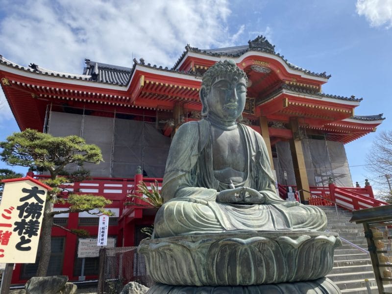 お腹がいっぱいになったら犬吠埼灯台へ向かうのですが、その前に銚子大仏の横を通りぬけ、「さのや」で大判焼きをGET。